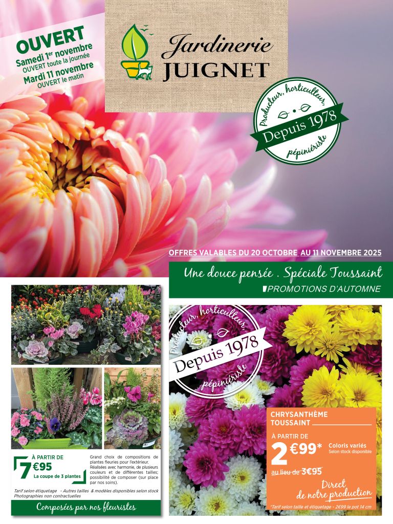 Jusqu'au 11 novembre 2025Catalogue promotionnel spécial plantations d'automne et Toussaint